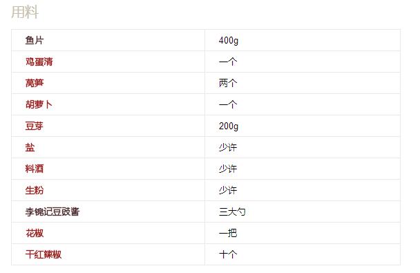 1、鱼肉片好(菜市场让师傅片的)要是自己片也可以,但是要看你的刀工喽。,放入盐、料酒、生粉和蛋清拌匀调味备用。准备配菜,莴笋、胡萝卜切厚片(太薄容易过烂),豆芽洗净备用,调味料备用。